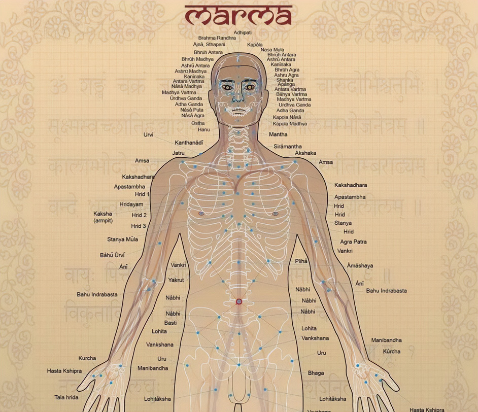 V terapeutickém kontextu se marma body stávají branami k léčení. Jsou to místa, kde se setkávají svaly (mamsa), cévy (sira), vazy (snayu), kosti (asthi) a klouby (sandhi). Nejde však pouze o anatomické struktury. V ájurvédském pojetí jsou marma body místy, kde se setkává vědomí s biologií.